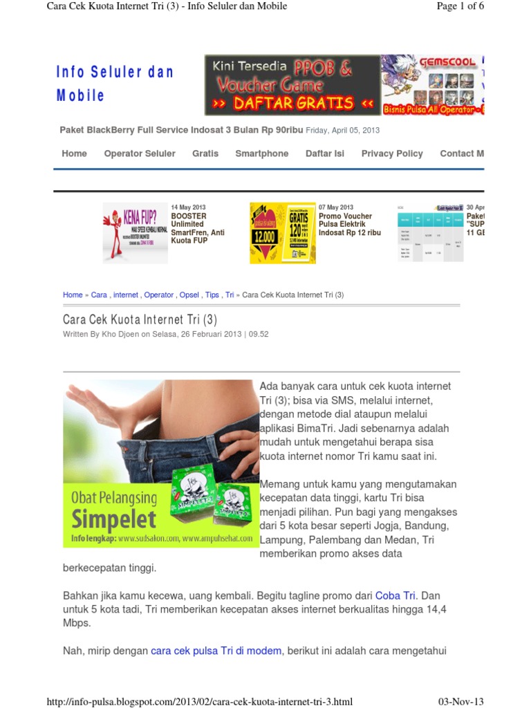 Cara Mudah Cek Kuota Paket Internet Kartu 3 Tri Terbaru Blog